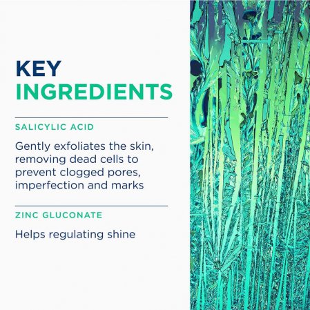 - Stimulează mecanismele naturale ale pielii cu două ingrediente active keratolice, acizii AHA and BHA, care susțin regenerarea celulară la nivelul pielii