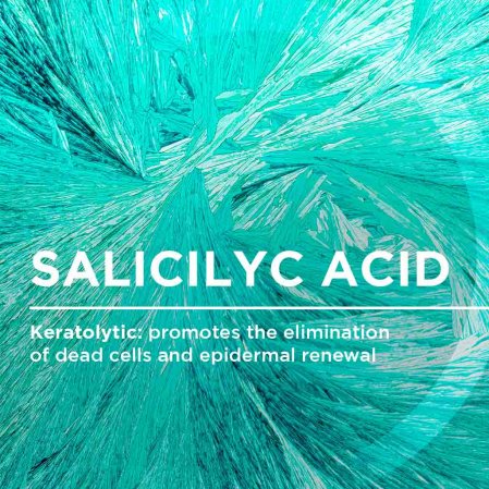 - Anti-semne și pori dilatați: Acidul salicilic acționează la suprafață pentru a reînnoi pielea, în timp ce Acetil Glucozamina, un derivat biomimetic al zahărului, prezent în mod natural în piele, promovează biologic reînnoirea celulară din interior.